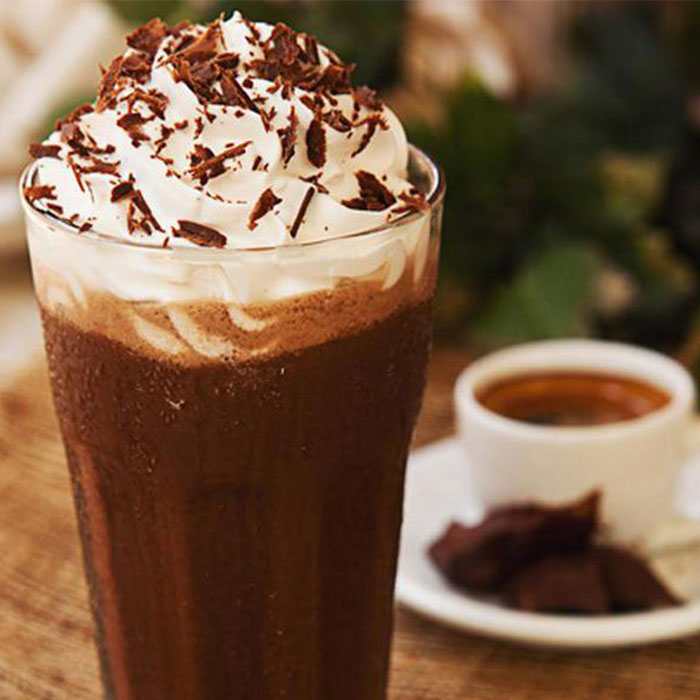 2/1 فنجان بستنی وانیلی را با 1 ساشه قهوه 3 در 1 تیمز در مخلوطکن ریخته و روشن میکنیم سپس 2/1 فنجان شیر را به آنها اضافه کرده و دوباره هم میزنیم و 3/1 فنجان یخ اضافه کرده و دوباره هم میزنیم. مخلوط حاصل را درون گلاسه ریخته و روی آن خامه قنادی فرم گرفته را با قیف میریزیم و سپس روی آن برای تزیین هات چاکلت تیمز را الک میکنیم. فراپه قهوه ما آماده نوشیدن است.